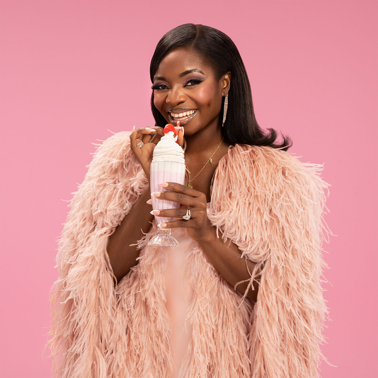“As a gourmand lover, I have always been addicted to sweet and delicious fragrances - especially ones that make me smell like my fav desserts! This is how Yum Pistachio Gelato | 33 was inspired. Our Yum story continues with the addition of Yum Boujee Marshmallow | 81, an incredibly boujee, fluffy and indulgent juice - a sweet treat for your senses! The inspo behind the hero note, pink marshmallow, came shortly after my husband and I got married - he calls me his “marshmallow” because I always smell so sweet and comforting! To make the juice even more tempting, we added fresh strawberries, whipped vanilla cream and light, flaky coconut - making this fragrance one of our most irresistible scents to date!” - Mona Kattan
